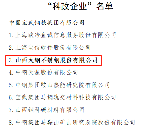 6月20日,國務(wù)院國有資產(chǎn)監(jiān)督管理委員會公布最新“科改企業(yè)”名單,據(jù)名單顯示,山西太鋼不銹鋼股份有限公司入選其中。